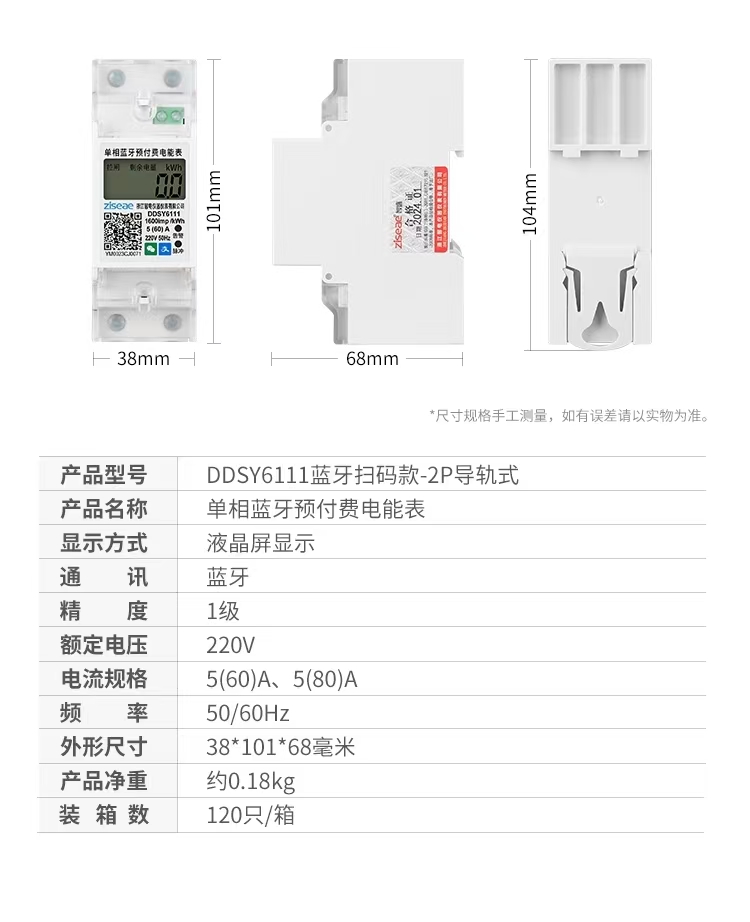 單相導(dǎo)軌藍(lán)牙掃碼充值電表