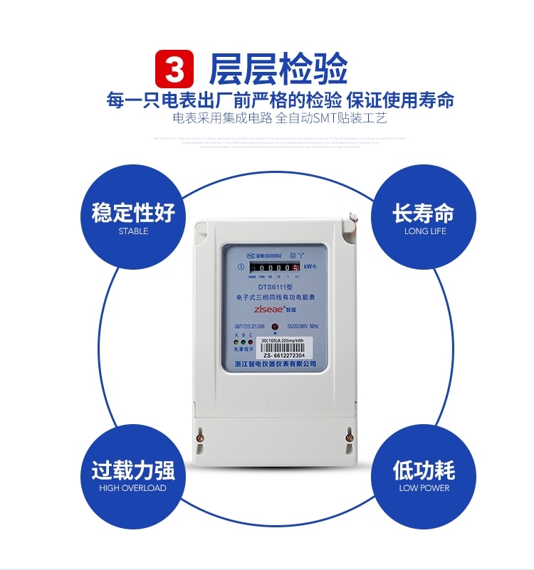 DTS6111型三相四線和DSS6111型三相三線兩種型號(hào)三相電子式有功電能表,內(nèi)部運(yùn)用了集成電路在經(jīng)過(guò)SMT工藝生產(chǎn)制作而成。結(jié)構(gòu)設(shè)計(jì)合理,制作工藝先進(jìn)。跟傳統(tǒng)的電能計(jì)量表對(duì)比,三相電子式有功電能表的測(cè)量準(zhǔn)確度高、性能可靠、節(jié)能。